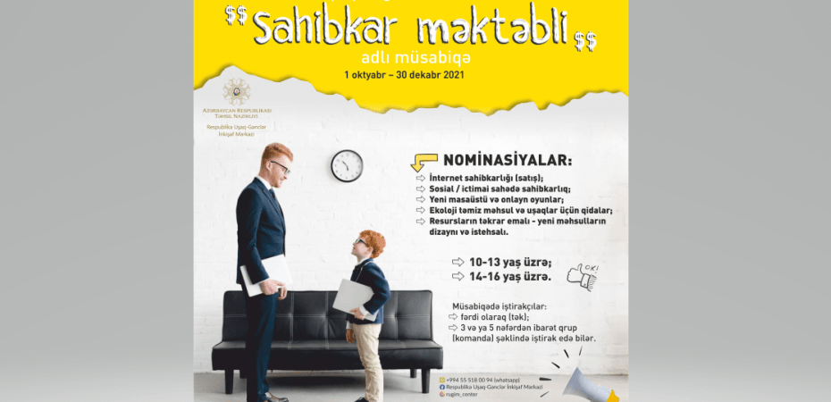 Uşaq və gənclər arasında hibrid (onlayn və canlı) formatda keçirilən “Sahibkar məktəbli” müsabiqəsinə layihələrin qəbulu davam edir.