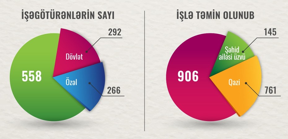Həmin vakansiyalar üzrə verilən göndərişlər əsasında artıq 906 nəfər (145 şəhid ailəsi üzvü və 761 qazi) işlə təmin olunub. Hazırda da bu kateqoriyalardan olan vətəndaşlara vakansiyalar üzrə göndərişlərin verilməsi davam edir.