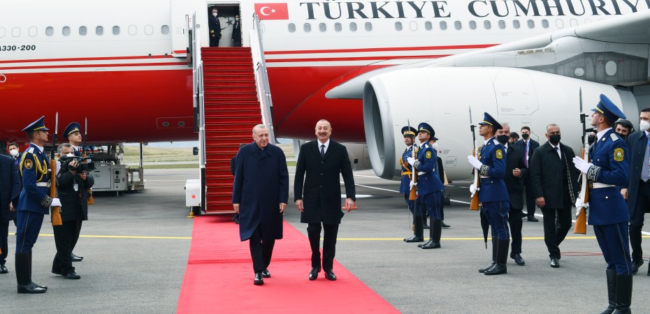 Türkiyə Prezidenti Rəcəb Tayyib Ərdoğanı hava limanında Azərbaycan Respublikasının Prezidenti İlham Əliyev qarşıladı.