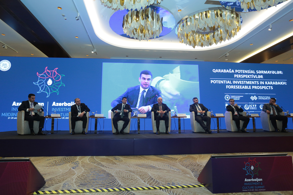 Oktyabrın 27-də öz işinə baslamış Azərbaycan İnvestisiya və Mədəniyyət Sammiti çərcivəsində “Qarabağa investisiya qoyuluşu: perspektivlər”, “İslam Əməkdaşlıq Təşkilatına üzv ölkələrin iqtisadi və ticarət perspektivləri: çağırışlar və imkanlar” və “PostCOVİD dövründə iqtisadiyyatın bərpası üçün güclü startap ekosistemi” mövzularında panel müzakirələr təşkil olunub.