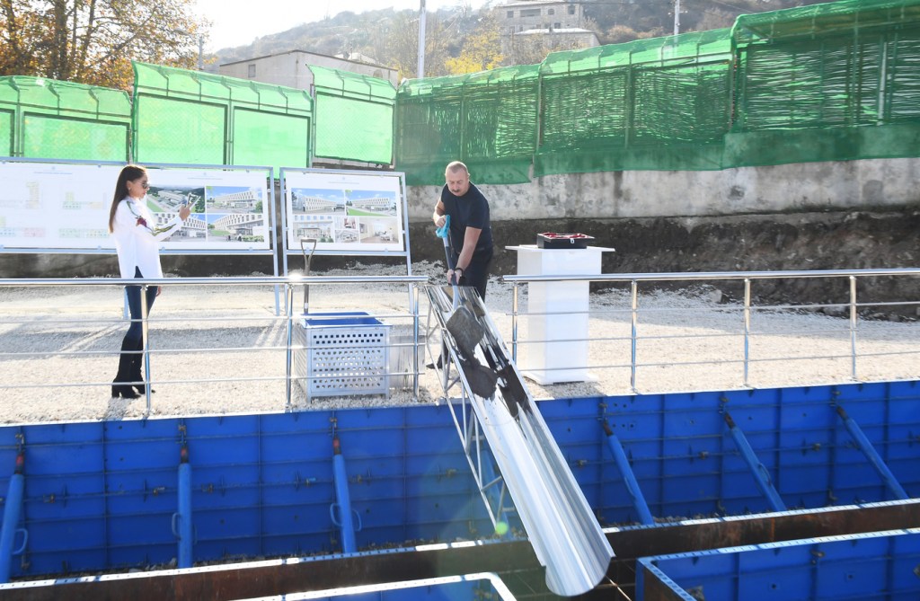 Azərbaycan Respublikasının Prezidenti İlham Əliyev və birinci xanım Mehriban Əliyeva təməlqoyma mərasimində iştirak ediblər.