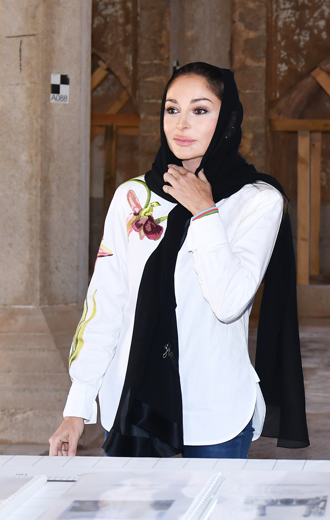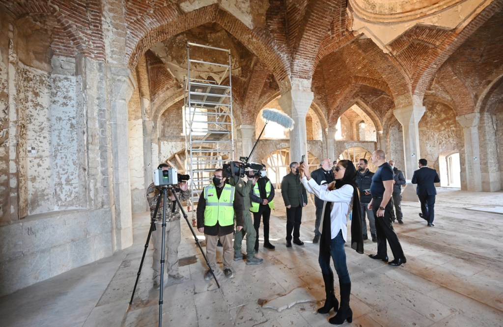 Səfər çərçivəsində dövlət başçısı və xanımı Şuşada Aşağı Gövhər Ağa məscidində Heydər Əliyev Fondu tərəfindən aparılan bərpa işləri ilə tanış olublar.
