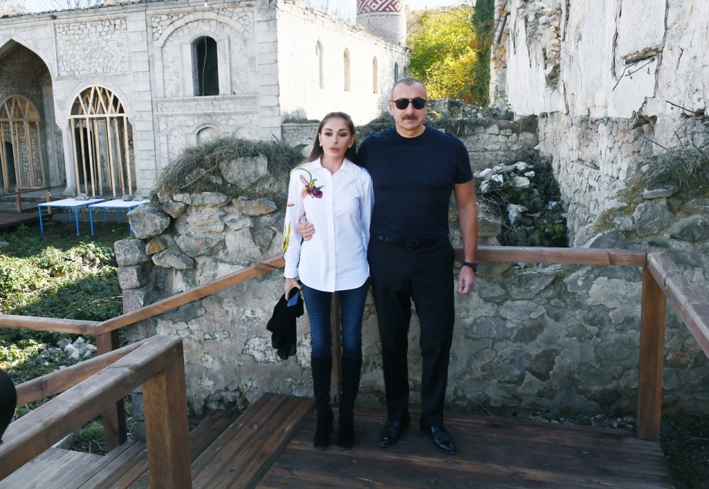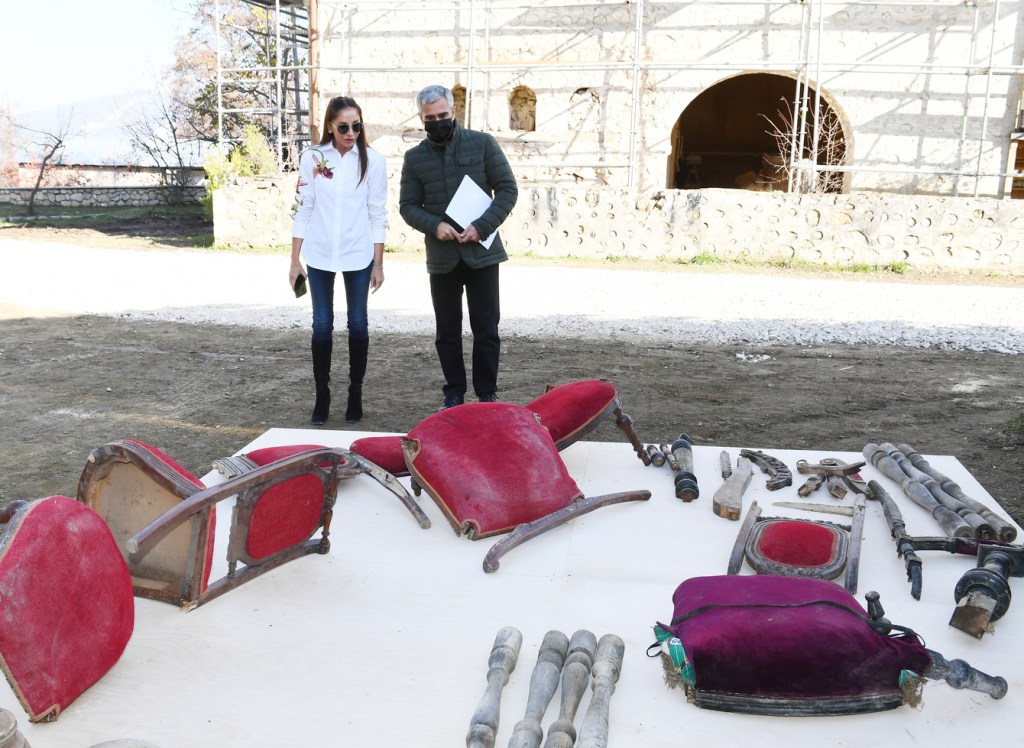 Daha sonra Prezident İlham Əliyev və birinci xanım Mehriban Əliyeva Şuşada Mehmandarovların malikanə kompleksində aparılan bərpa işləri ilə tanış olublar.