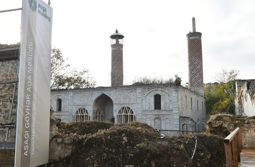 Şuşa şəhəri işğal altında olduğu müddətdə ermənilər tərəfindən dağıdılmış Aşağı Gövhər Ağa, Yuxarı Gövhər Ağa və Saatlı məscidləri ilkin layihəyə uyğun olaraq bərpa olunur. Hər üç məscid ölkə əhəmiyyətli tarixi-mədəniyyət abidələri siyahısındadır. Ötən bir il ərzində Azərbaycan, Avstriya, İtaliya, Latviya və Türkiyədən olan ekspertlər tərəfindən qeyd olunan məscidlərdə qiymətləndirmə işləri aparılıb, bərpa layihəsi işlənilib. Hər üç məscidin bərpa işləri “Paşa Holdinq”in maliyyə dəstəyi ilə həyata keçirilir. Heydər Əliyev Fondu tarixi Yuxarı Gövhər Ağa məscidində bərpa işlərinin birinci mərhələsini artıq başa çatdırıb. Hazırda məsciddə ikinci mərhələ üzrə bərpa işləri aparılır. Bu mərhələdə məsciddə ilkin layihə qorunmaqla möhkəmləndirmə işləri həyata keçiriləcək, məscidin ərazisində olan və ermənilər tərəfindən dağıdılmış mədrəsə də bərpa ediləcək. Ən geniş bərpa işləri dağıntıların miqyasına uyğun olaraq, Aşağı Gövhər Ağa məscidində aparılacaq. Məscidlərin minarələri bərpa olunacaq, eləcə də dam və döşəmə örtükləri dəyişdiriləcək.