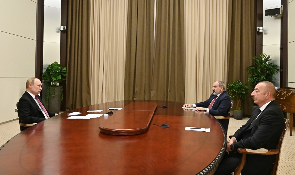 TIME rəsmi mənbəyə istinadən bildirir ki, üçtərəfli görüşdən sonra Rusiya Prezidenti, Azərbaycan Prezidenti və Ermənistanın baş naziri mətbuata bəyanatla çıxış ediblər.