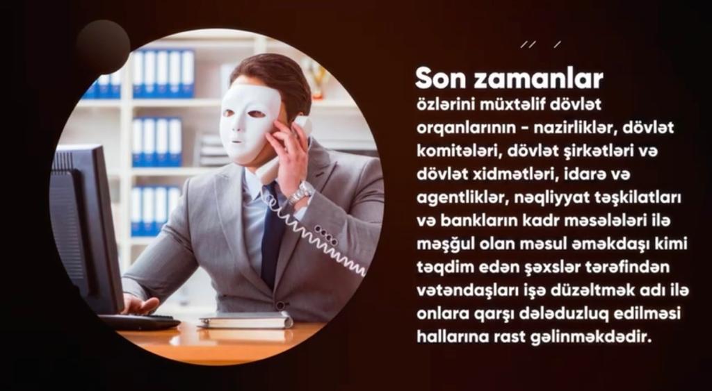 Bu dəfə təqdim olunan #maariflənək həştəqinin mövzusu özlərini dövlət orqanlarının əməkdaşı kimi təqdim edib vətəndaşları işə düzəltmək adı ilə aldadan şəxslərlə bağlı məlumat verilir.