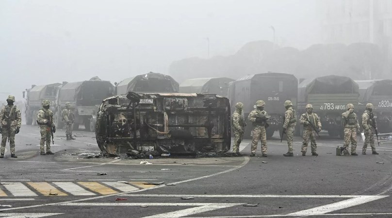 На фоне ситуации Токаев попросил ОДКБ, куда помимо Казахстана входят Россия, Белоруссия, Таджикистан, Армения и Киргизия, ввести войска. Организация согласилась и направила на ограниченный период коллективные миротворческие силы. От российской армии бортами ВКС отправились подразделения ВДВ.