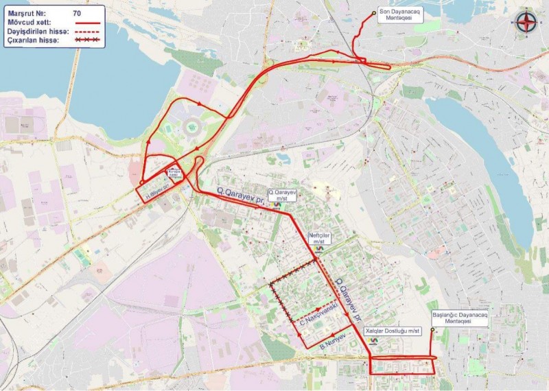 70 nömrəli müntəzəm marşrut xəttinin Sabunçu qəsəbəsi istiqamətində hərəkət sxemində dəyişiklik olunaraq Cəmşid Naxçıvanski küçəsi və Qara Qarayev prospekti ilə təşkil edilib.