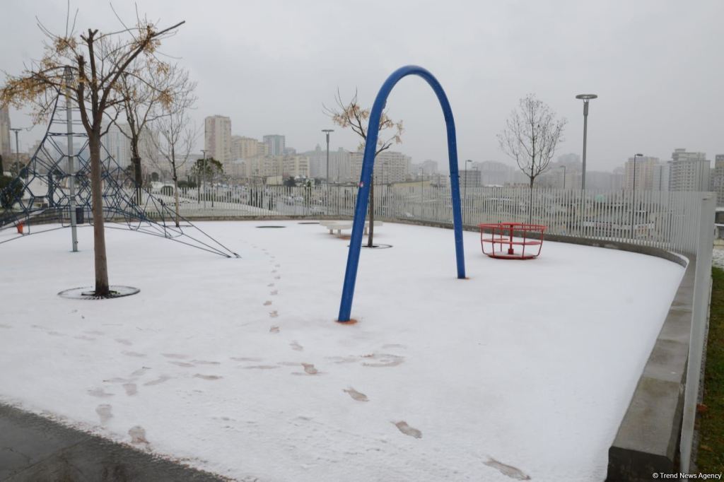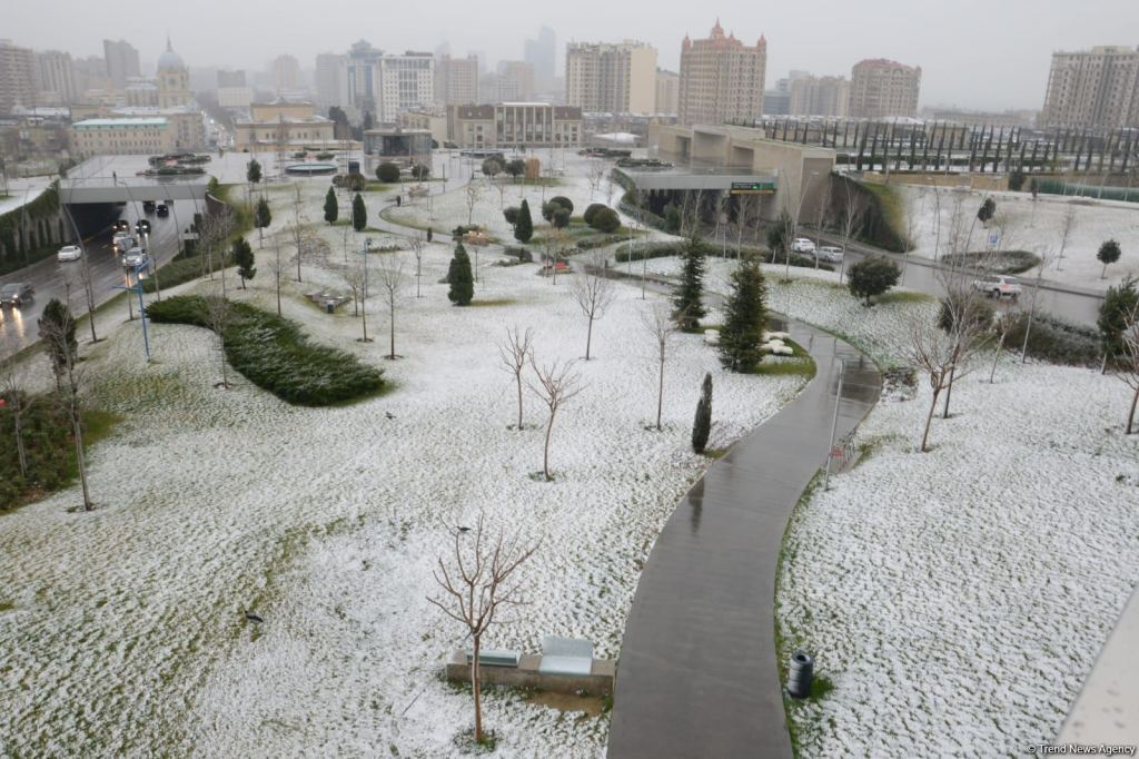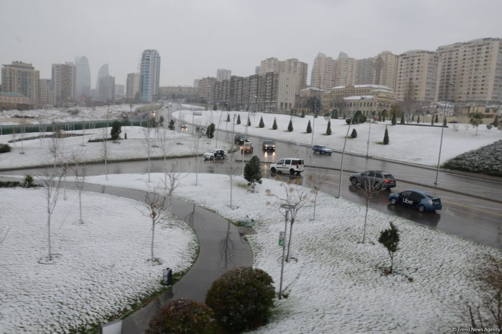 Bakıda axşamdan başlayan sulu qar səhər saatlarından qara çevrilib.
