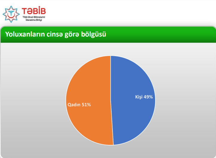 Yoluxanların statistikasına əsasən qadınların sayı daha çoxdur (51%), kişilər isə müvafiq olaraq 49% təşkil edirlər.