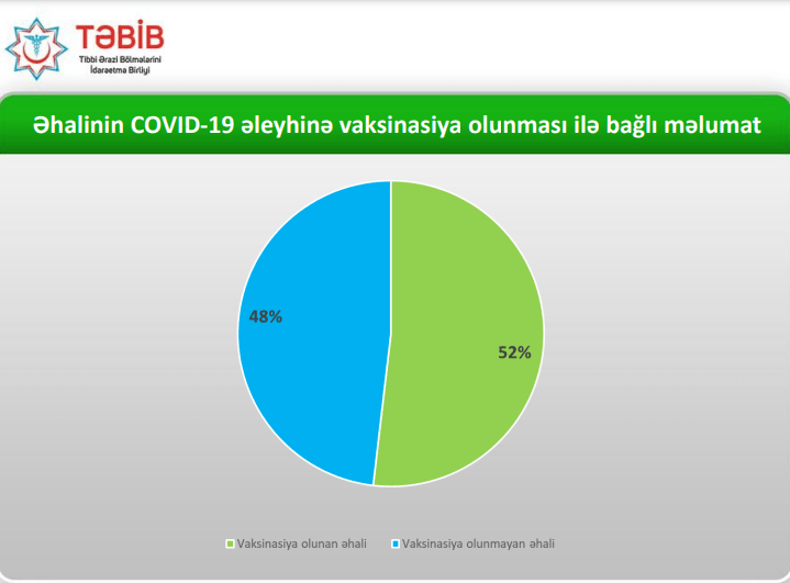 TIME rəsmi mənbəyə istinadən bildirir ki, rəsmi statistikaya əsasən hazırda Azərbaycan əhalisinin 52% COVID-19 əleyhinə vaksinasiya olunub.