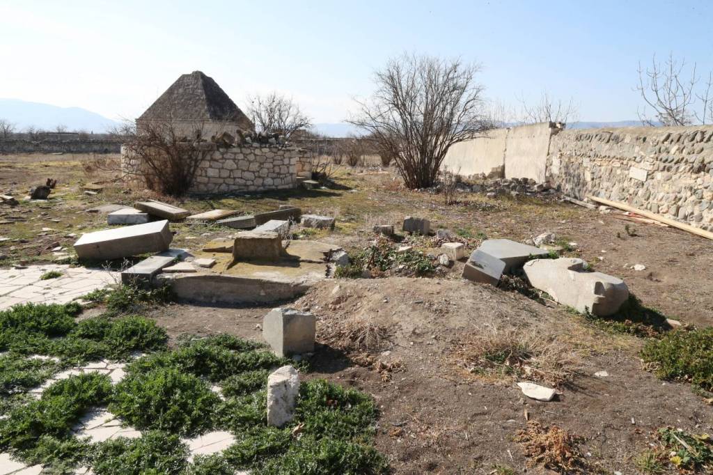Qarabağ xanları Pənahəli xanın, İbrahimxəlil xanın və Mehdiqulu xan Cavanşirin, eləcə də onların ailə üzvlərinin – Xan qızı, şairə və xeyriyyəçi Xurşidbanu Natəvanın, şair və ictimai xadim Cəfərqulu xan Cavanşirin, xeyriyyəçi, Şuşada Aşağı və Yuxarı Gövhərağa məscidlərini tikdirmiş Gövhərnisə bəyimin, şairə, “Məclisi-üns”ün iştirakçılarından olmuş Xanbikə xanımın qəbirləri burada yerləşir. Xan sarayının yaxınlığında yerləşən və Qarabağ xan nəslinin bir çox nümayəndələrinin dəfn edildiyi İmarət qəbiristanlığı da erməni vəhşiliyinə məruz qalıb.