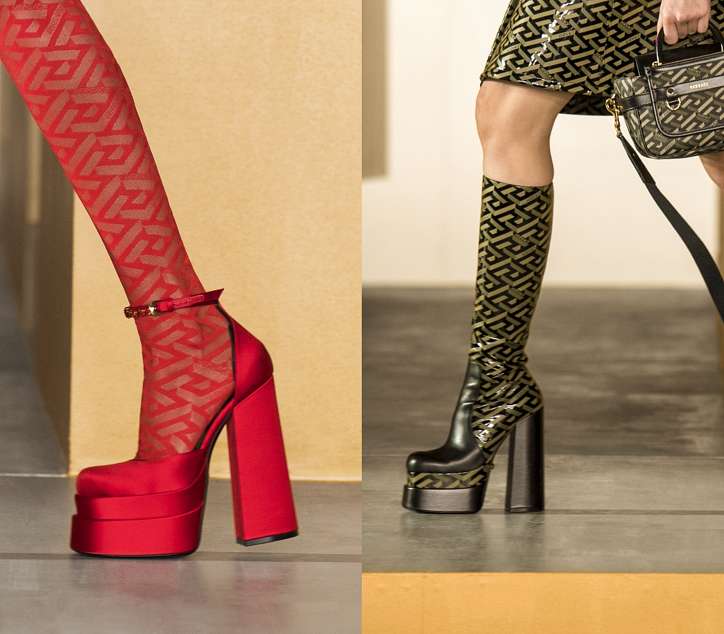 Туфли, сапоги или сандалии на платформе имеют толстую подошву от 3 до 10 сантиметров. Они также могут быть на каблуках, в этом случае каблук поднимается значительно выше, чем подушечка стопы.