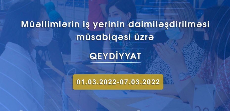 2021-2022-ci tədris ili üzrə müəllimlərin işə qəbulu müsabiqəsində müddətli müqavilə əsasında işə qəbul olunmuş namizədlərlə müddətsiz əmək müqaviləsinin bağlanılması məqsədi ilə daimiləşmə müsabiqəsinə start verilir.