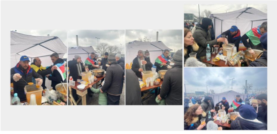 Ukraynanın döyüş gedən şəhərlərindən Lvov şəhərinə gələn soydaşlarımız üçün səyyar qida məntəqələri yaradılıb.