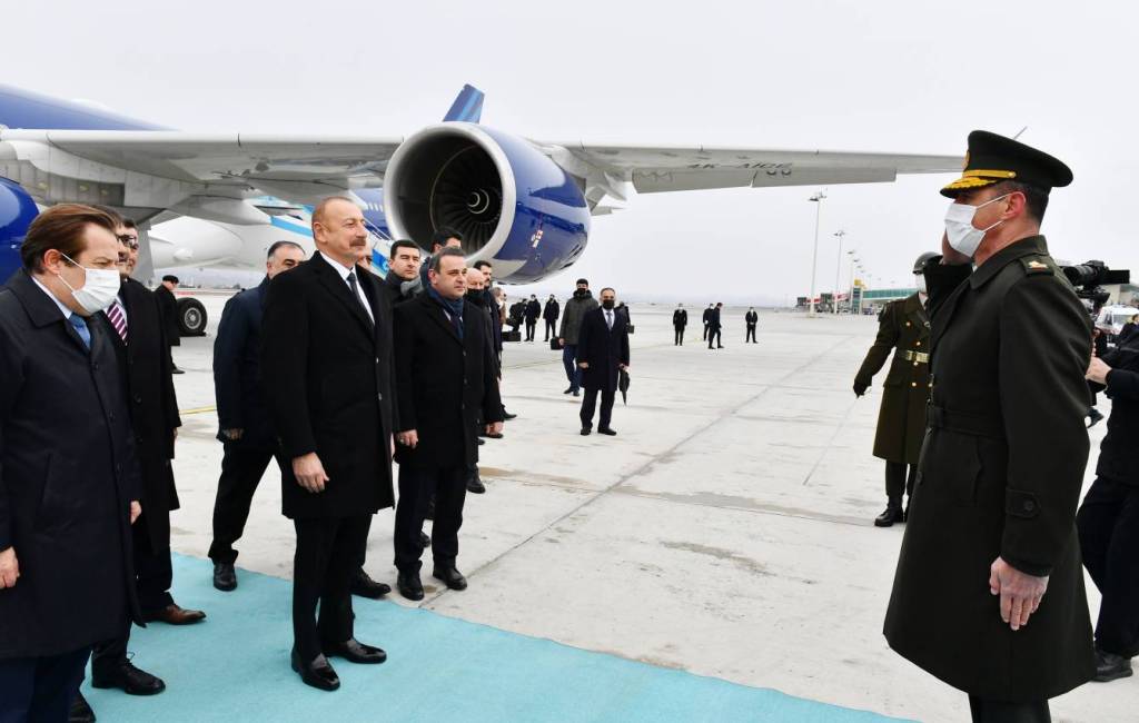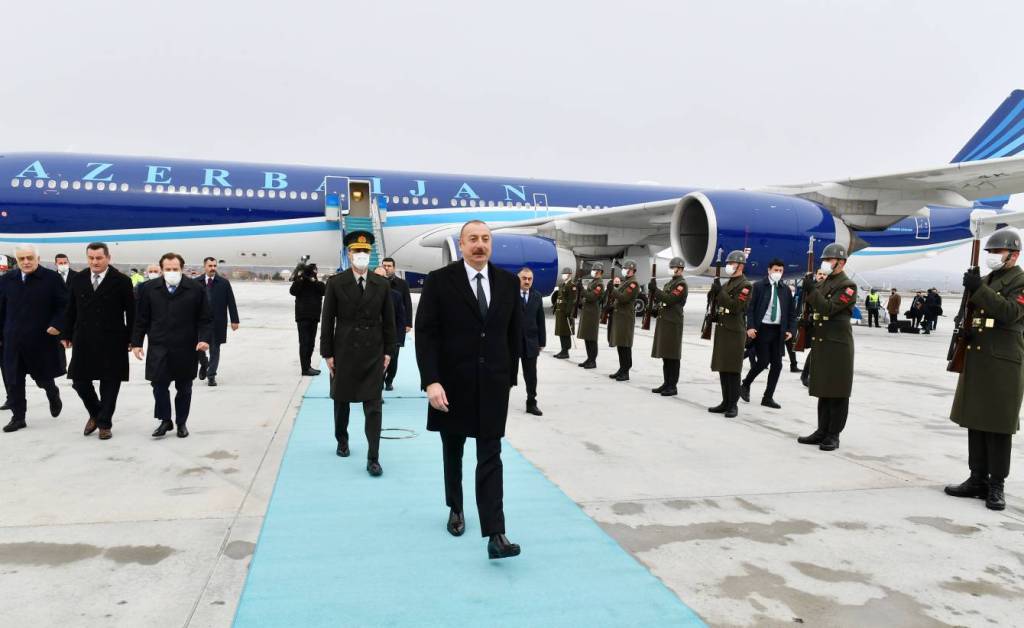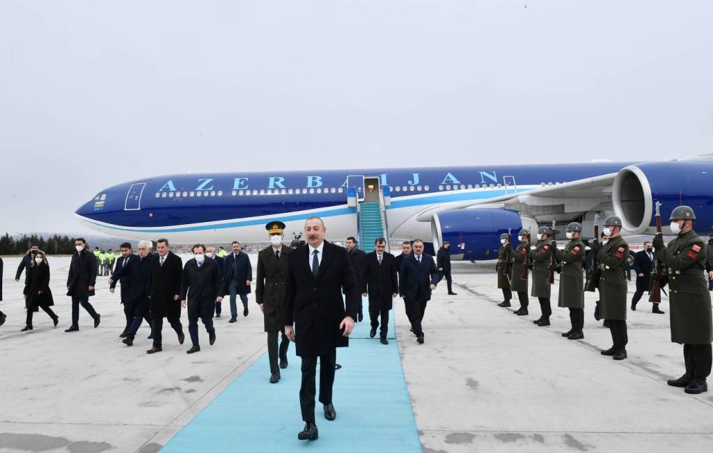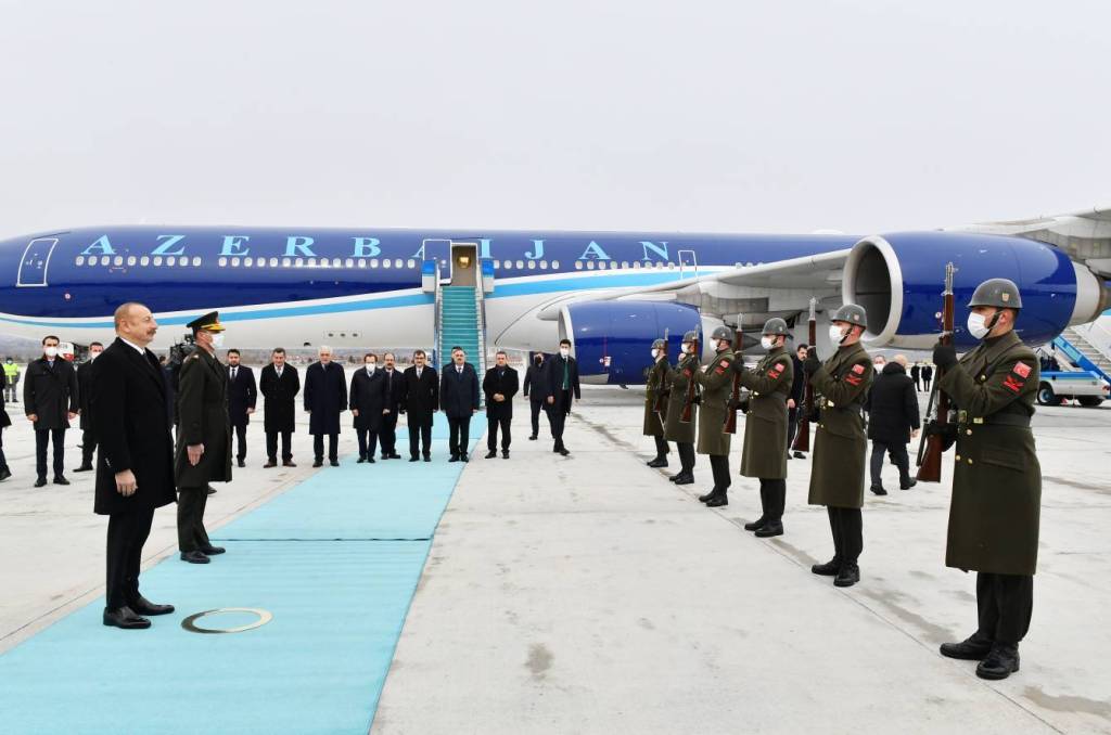 TIME rəsmi mənbəyə istinadən bildirir ki, hər iki ölkənin Dövlət bayraqlarının dalğalandığı Ankaranın Esenboğa Hava Limanında dövlətimizin başçısının şərəfinə fəxri qarovul dəstəsi düzülüb.
