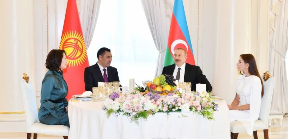 Daha sonra, Azərbaycan Respublikasının Prezidenti İlham Əliyev və xanımı Mehriban Əliyevanın adından Qırğız Respublikasının Prezidenti Sadır Japarov və xanımı Ayqul Japarovanın şərəfinə rəsmi ziyafət verilib.