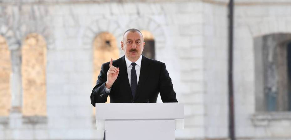 Əgər bu şəhər ermənilərə mənsub olsaydı, bu günə qoyardılarmı bunu? Burada cəmi 1800 adam yaşayırdı. Özü də onların 90 faizi hərbçilər və onların ailə üzvləri idi. Burada bir dənə də salamat tarixi bina qalmamışdır. Ermənilər 17 bulağın 17-sini də qurutmuşdular, məscidlərimizi təhqir etmişdilər, sökmüşdülər, saraylarımızı sökmüşdülər. Yəni, bir dənə də burada yeni bir bina tikilməmişdi. Sadəcə olaraq, bizim təbii sərvətlərimizi istismar ediblər və təkcə Şuşa yox, bütün digər şəhərlər də eyni vəziyyətdədir. Tamamilə dağılmış Ağdamı xarici ekspertlər, jurnalistlər Xirosimaya bənzədirlər. Bəli, Xirosima atom bombası nəticəsində məhv edildi. Ağdam və digər şəhərlər erməni vandallığı nəticəsində məhv edildi. Birinci Qarabağ müharibəsi dayanandan sonra 30 il ərzində binaları daş-daş söküb, daşıyıb satmışdılar və beynəlxalq təşkilatların hesabatlarında bu, var. Qəbirləri qazırdılar, ölülərin qızıl dişlərini çıxarırdılar. Yəni, Ermənistan və erməni xalqı bu vəhşiliyə görə dünya miqyasında rəzil oldu. Ona görə gələn hər qonaq, azad edilmiş torpaqlara gedən hər qonaq erməni vəhşiliyini görür və görməlidir. Görməlidir ki, biz təkcə işğalçını yox, faşistləri məhv etdik. Onların Birinci Qarabağ müharibəsində, İkinci Qarabağ müharibəsində, iki müharibə arasındakı dövr ərzində bütün əməlləri faşist əməlləridir. Bizim dinc şəhərlərimizi müharibə dövründə ballistik raketlərlə atəşə tutmaq, insanları məhv etmək faşizm deyil, bəs nədir? “Tocka-U”, “SCUD”, “İskəndər-M” raketi ilə Şuşa vurulmuşdu. Qar əriyəndən sonra Şuşada, şəhərin mərkəzində “İskəndər-M” raketinin qalıqları aşkarlanmışdır və bir daha biz sübut etdik ki, Ermənistan bu ölümcül silahdan, qadağan edilmiş silahdan və onlarda heç cür olmayan silahdan istifadə edib. Buna inanmayanlar gəlib Hərbi Qənimətlər Parkında “İskəndər-M” raketinin qalıqlarını görə bilərlər.