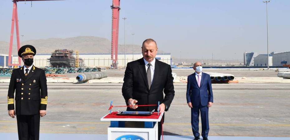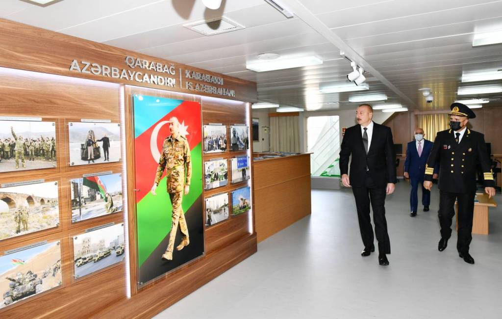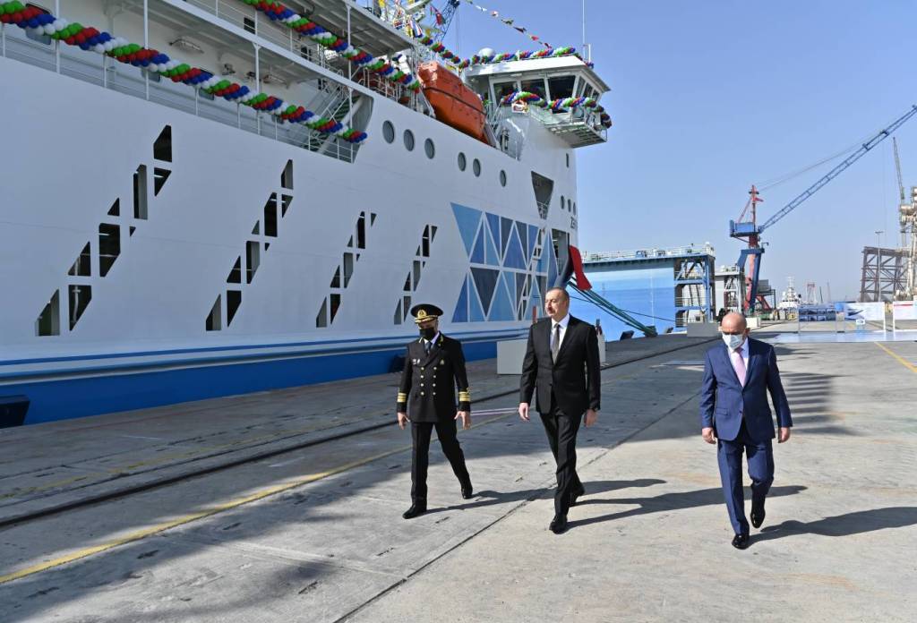 Gəmi-bərə ilə tanış olan Prezident İlham Əliyev daha sonra onun işə salınmasını bildirən düyməni basdı.