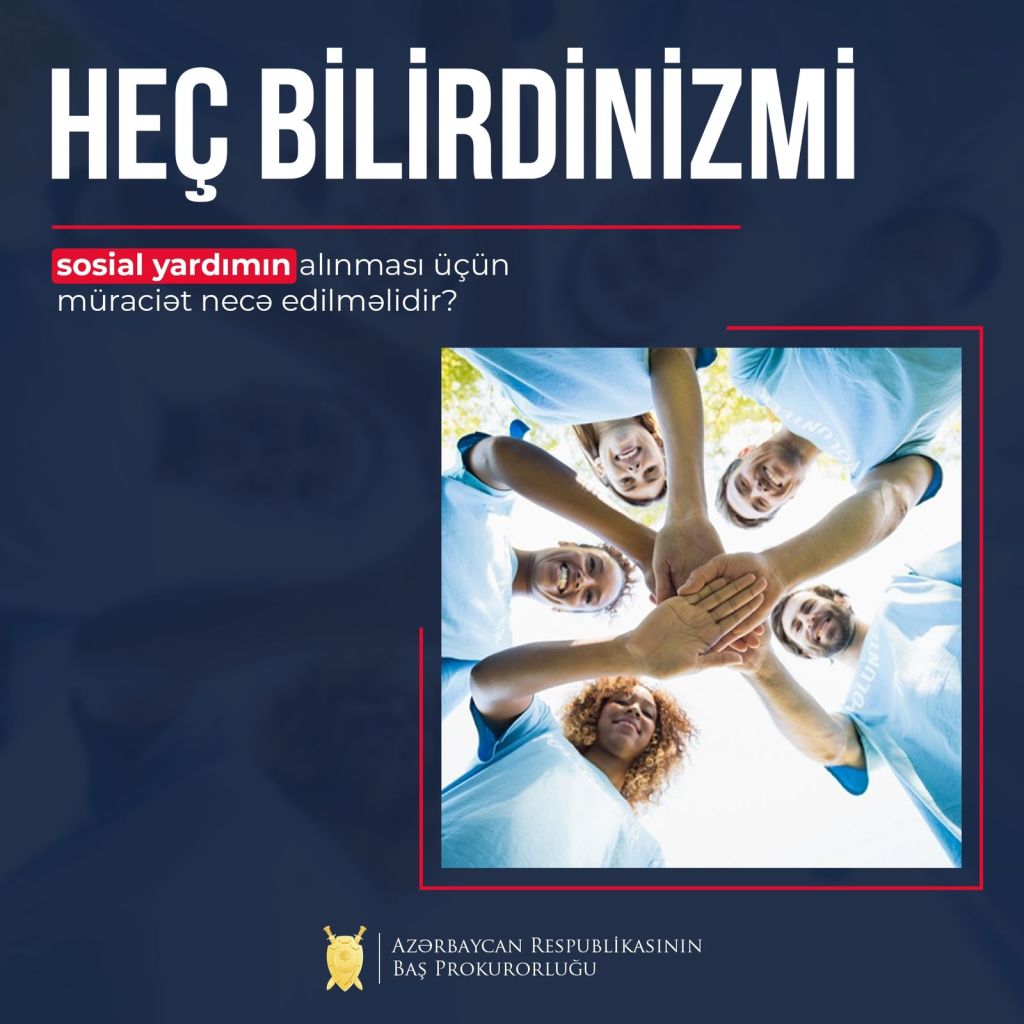 Baş Prokurorluq “Sosial yardımın alınması üçün müraciət necə edilməlidir?” sualını cavablandırıb .