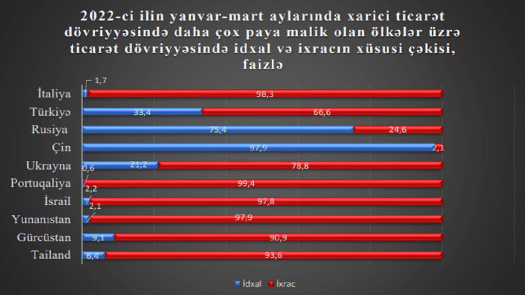 və İspaniya, 11,2 faizi isə digər ölkələr ilə aparılmış ticarət əməliyyatlarının payına