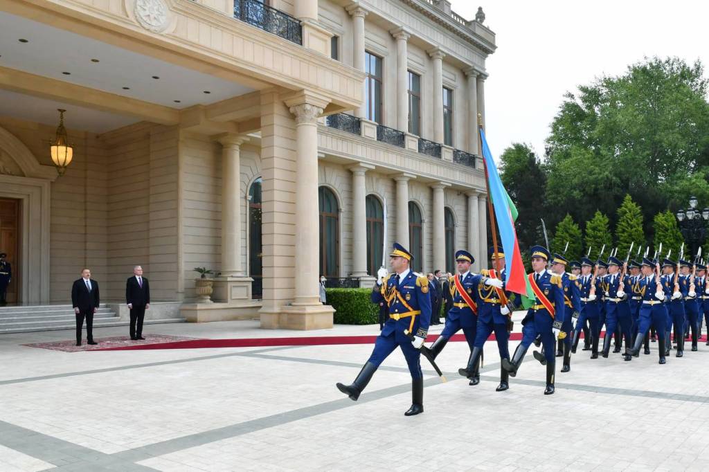Fəxri qarovul dəstəsi hərbi marşın sədaları altında Azərbaycan Prezidenti İlham Əliyevin və Litva Prezidenti Gitanas Nausedanın qarşısından keçdi.