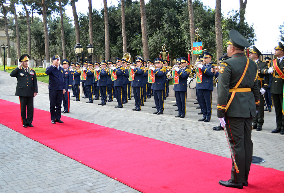 Sonra Müdafiə Nazirliyində təntənəli qarşılama mərasimi olub, hər iki ölkənin müdafiə nazirləri fəxri qarovulun önündən keçib, dövlət himnləri səsləndirilib.