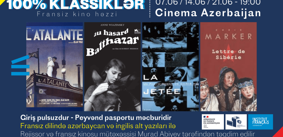 Azərbaycan Kinematoqrafçılar İttifaqı ilə Azərbaycanda Fransız İnstitutu və Fransanın Azərbaycandakı Səfirliyinin əməkdaşlığı çərçivəsində həyata keçirilən nümayiş “Azərbaycan” kinoteatrında olacaq.