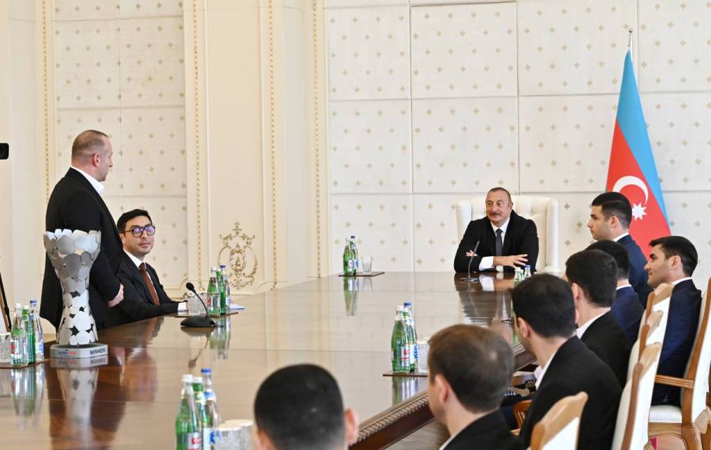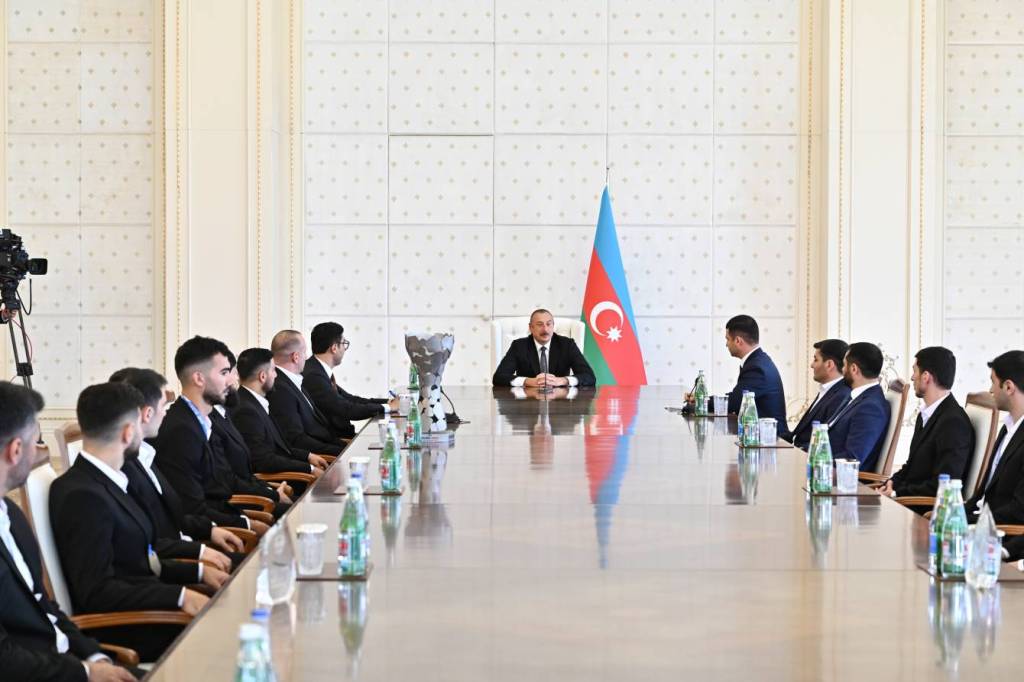 Şadam ki, komandamızın tərkibi yerli idmançılardan ibarətdir – həm oyunçular, həm məşqçilər, mütəxəssislər. Bu, məni xüsusilə sevindirir. Onu da bilirəm ki, minifutbol üzrə bizim komandamız cəmi ikinci dəfə Avropa çempionatında iştirak edir və artıq çempion tituluna layiq görülüb. Mübarizə gərgin olub, istənilən idman növündə Avropa çempionatları çox gərgin keçir. Əlbəttə ki, Avropanın ən güclü komandaları orada təmsil olunur. Çempionat boyunca göstərdiyiniz həm peşəkarlıq, deyə bilərəm ki, həm də böyük fədakarlıq bu qələbəni mümkün edib. Siz xalqımızı sevindirmisiniz və təsadüfi deyil ki, Azərbaycan vətəndaşları sizi hava limanında böyük məhəbbətlə qarşılayıblar. Mən sizi ürəkdən təbrik edirəm. Bu, doğrudan da çox böyük qələbədir, tarixi qələbədir.
