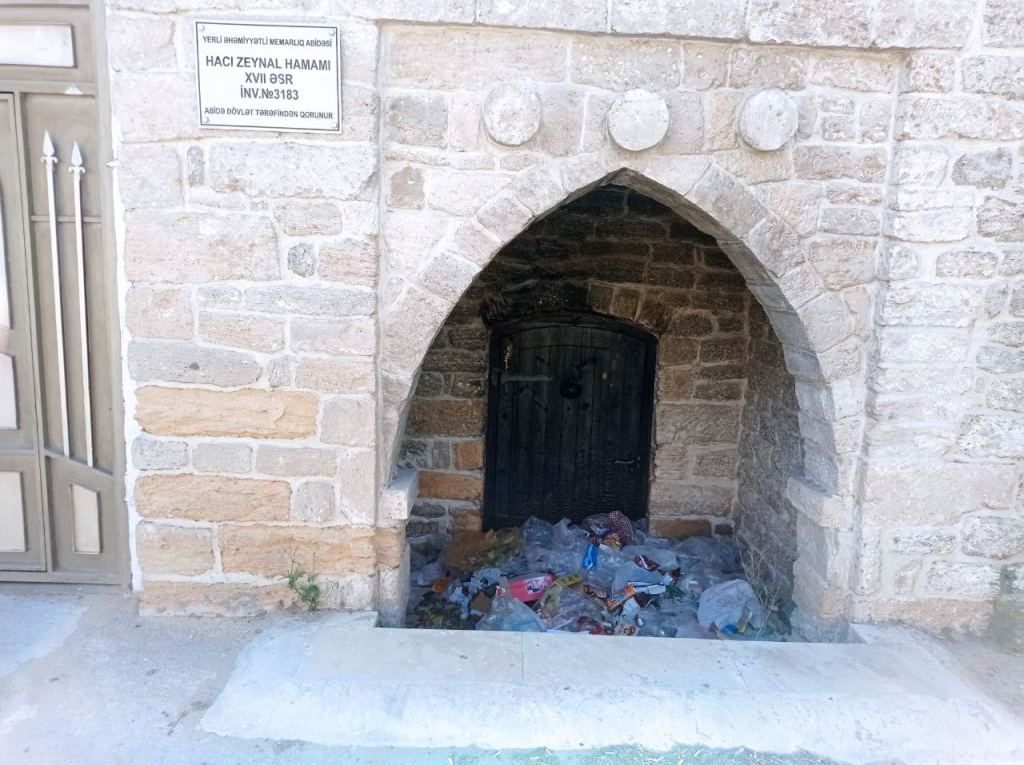 Sosial şəbəkələrdə yayılan görüntülərdə Sabunçu rayonunun Kürdəxanı kəndində XVII əsrə aid Hacı Zeynal hamamının ətrafının məişət tullantıları ilə çirkləndiyi görüntüləri yayılıb.