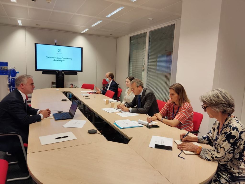 Növbəti tədbirdə Ağalı “Ağıllı kənd” layihəsini təqdim etmək məqsədilə Avropa Komissiyasının Xarici Fəaliyyət Xidməti, Qonşuluq Siyasəti və Kənd Təsərrüfatı üzrə Baş Direktorluqlarının rəsmiləri ilə görüş keçirilib. Görüş zamanı Mirzə Əliyev sözügedən layihə barədə təqdimatla çıxış edib və sualları cavablandırıb.