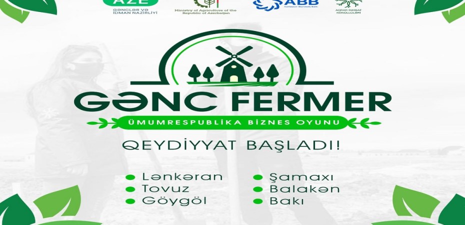 “Aqrar İnkişaf Könüllüləri” Təşkilatının təşkilatçılığı, Gənclər və İdman Nazirliyinin maliyyə dəstəyi, Kənd Təsərrüfatı Nazirliyi və Azərbaycan Beynəlxalq Bankının tərəfdaşlığı ilə “Gənc Fermer” Ümumrespublika Biznes Oyunu layihəsinə start verilir.