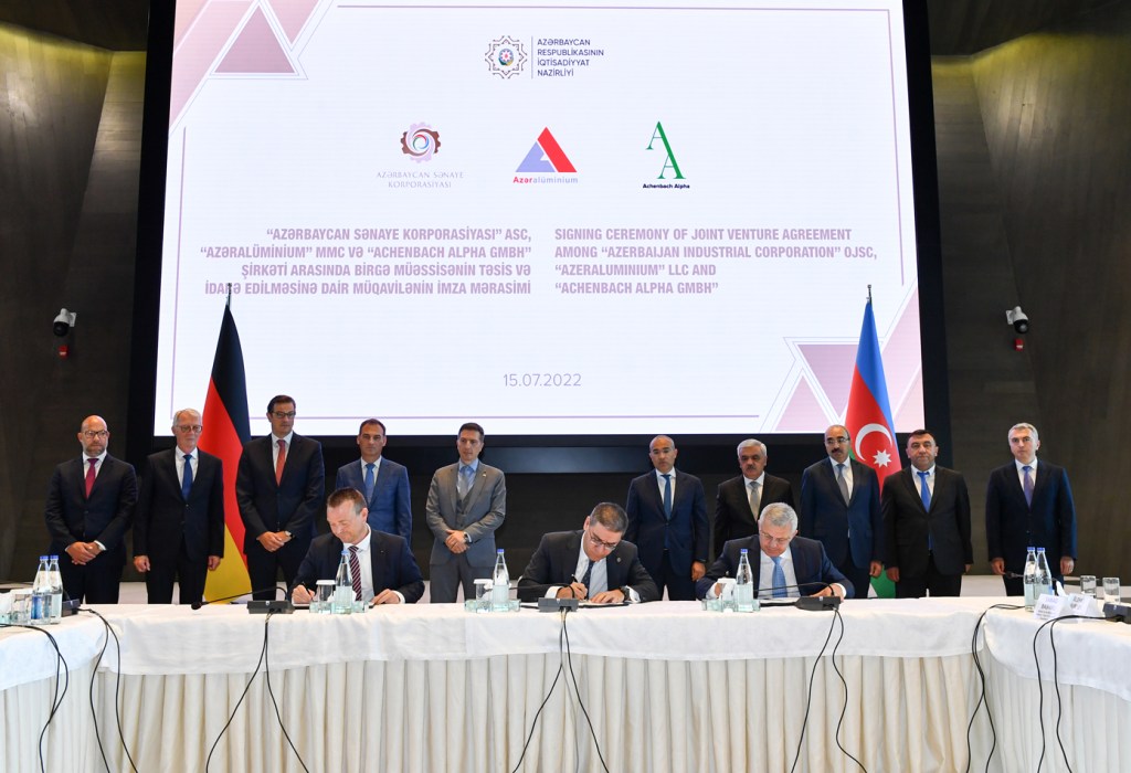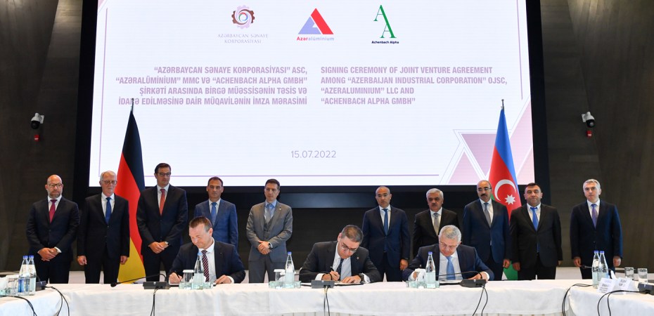 “Azərbaycan Sənaye Korporasiyası” ASC, “Azəralüminium” MMC və Almaniyanın “Achenbach Alpha GmbH” şirkəti arasında birgə müəssisənin təsis və idarə edilməsinə dair müqavilə imzalanıb.