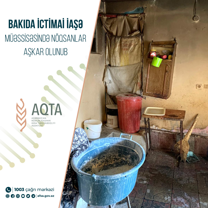 Belə ki, müəssisədə sanitar-gigiyenik qaydalara, texnoloji ardıcıllığa, mal qonşuluğu prinsipinə və temperatur rejminə riayət olunmadığı, havalandırma sisteminin quraşdırılmadığı, işçi heyətin tibbi müayinədən keçmədiyi və xüsusi geyimlə tam təmin edilmədiyi, həmçinin müvafiq təmizlik işlərinin aparılmadığı və digər nöqsanlar aşkar olunub. Müəyyən edilmiş nöqsanlarla bağlı müəssisə rəhbəri inzibati məsuliyyətə cəlb olunub, müəssisənin fəaliyyəti məhdudlaşdırılıb.