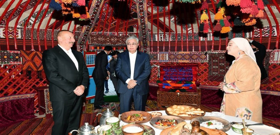 TIME rəsmi mənbəyə istinadən bildirir ki, Prezidentlər Azərbaycan-Qazaxıstan diplomatik əlaqələrinin 30 illiyi münasibətilə Dənizkənarı Milli Parkda qurulmuş “Qazax yurtası” ilə tanış olublar.
