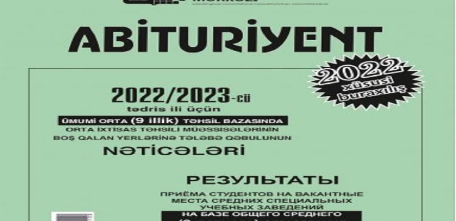 TIME rəsmi mənbəyə istinadən bildirir ki, “Abituriyent” jurnalının bu xüsusi buraxılışında ümumi orta (9 illik) təhsil bazasında orta ixtisas təhsili müəssisələrinin boş qalan yerlərinə qəbul olmuş abituriyentlərin siyahısı, ixtisaslar üzrə minimal keçid balları və s. məlumatlar Azərbaycan və rus dillərində təqdim olunub.
