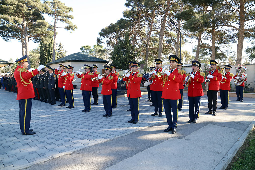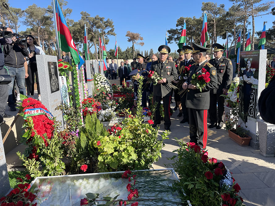 Sonra Müdafiə Nazirliyinin rəhbərliyi İkinci Şəhidlər xiyabanını ziyarət edib. Hərbi orkestrin müşayiəti ilə Azərbaycan Respublikasının Dövlət Himni ifa olunub. Ölkəmizin müstəqilliyi və ərazi bütövlüyünün təmin olunması uğrunda şəhid olan Vətən övladlarının xatirəsi bir dəqiqəlik sükutla yad edilib və ruhlarına dualar oxunub, məzarları ziyarət edilərək üzərlərinə gül dəstələri düzülüb.