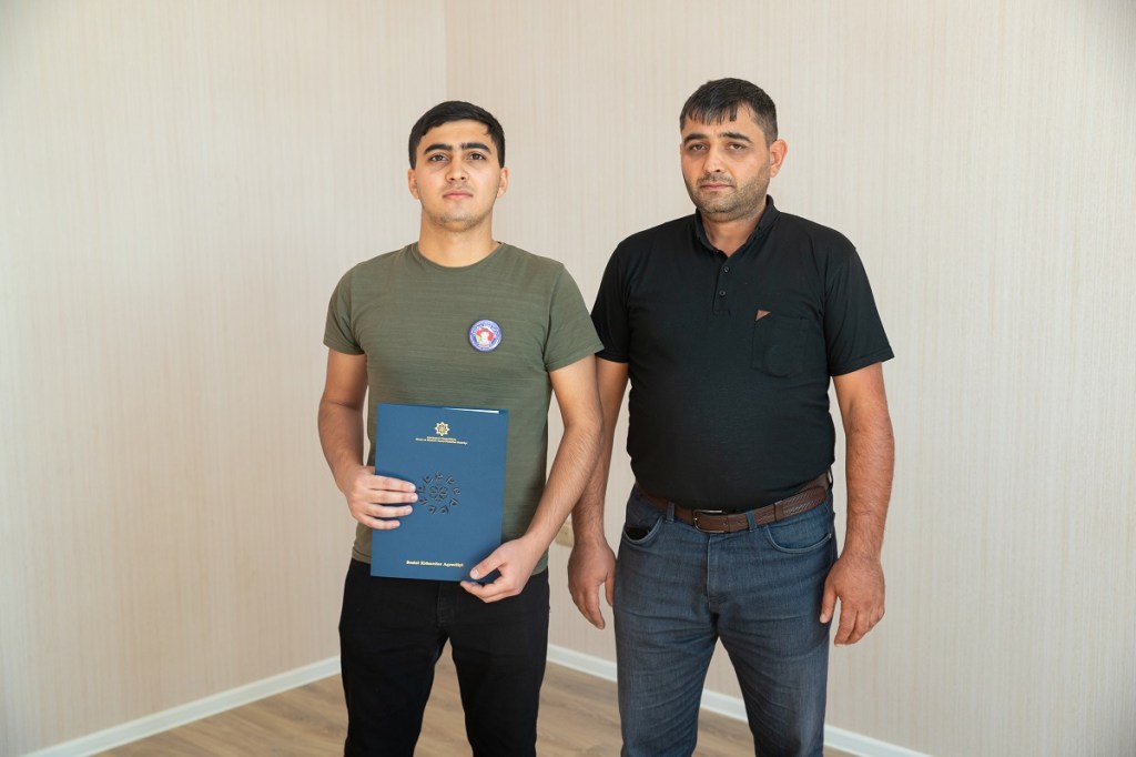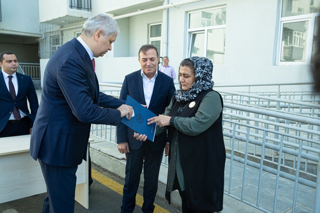 Mənzillərin sənədlərini əmək və əhalinin sosial müdafiəsi nazirinin müavini Hidayət Abdullayev və xalq artisti Mənsum İbrahimov təqdim ediblər.