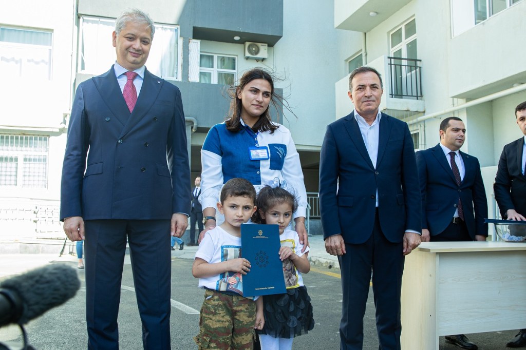 Bildirilib ki, postmüharibə dövründə mənzillə təminat proqramı 5 dəfə genişlənib, bu gün verilən mənzillər də daxil olmaqla 3850 mənzil şəhid ailələri, müharibə əlilləri və həssas təbəqədən olan digər şəxslərə verilib. Ümumilikdə ötən dövrdə 12850 imtiyazlı şəxs mənzil və ya fərdi evlə təmin edilib.