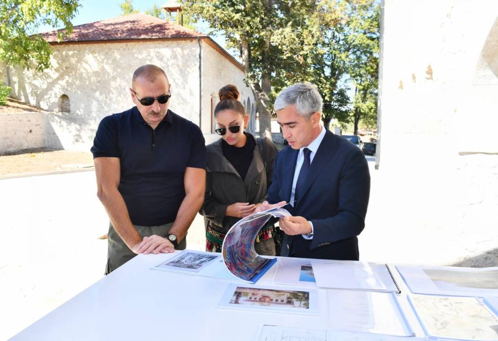 TIME rəsmi mənbəyə istinadən bildirir ki, Prezident İlham Əliyev və birinci xanım Mehriban Əliyeva Şuşa şəhərində inşa olunan yeni yaşayış kompleksində, Şuşa otel və konfrans mərkəzində aparılan tikinti işləri ilə, Azərbaycan Respublikasının Prezidentinin Şuşa rayonunda xüsusi nümayəndəliyinin binasında yaradılan şəraitlə, Mehmandarovların malikanə kompleksində, yenidən qurulan oteldə aparılan təmir-bərpa işlərinin və Şuşa şəhəri 1 saylı tam orta məktəbin binasında tikinti işlərinin gedişi ilə tanış olublar.
