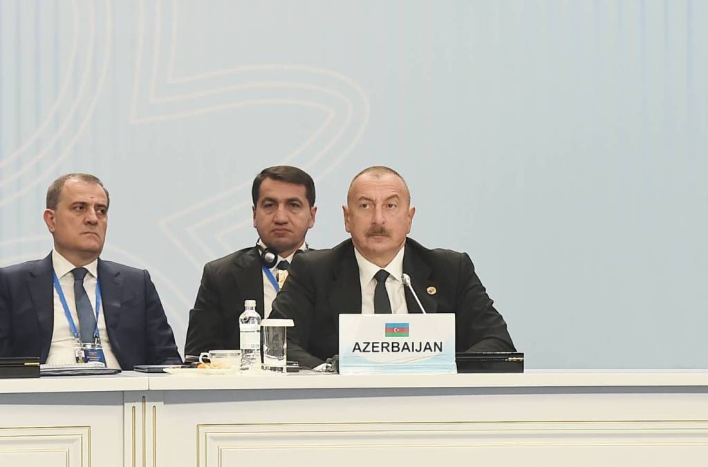 Mən, ilk növbədə, Qazaxıstan Prezidenti Kasım-Jomart Tokayevə Asiyada Qarşılıqlı Fəaliyyət və Etimad Tədbirləri üzrə Müşavirənin 6-cı Zirvə Toplantısına (AQEM) dəvətinə və qonaqpərvərliyə görə minnətdarlığımı bildirirəm.