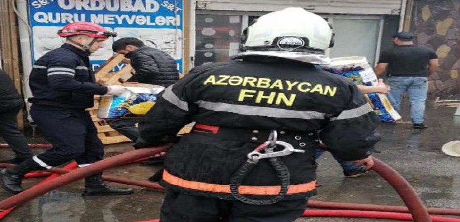 Yanğın zamanı birinci mərtəbədə yerləşən mağazalardakı malların yanğınsöndürən və xilasedicilər tərəfindən çıxarılaraq təhlükəsiz əraziyə daşınması təmin olunub.