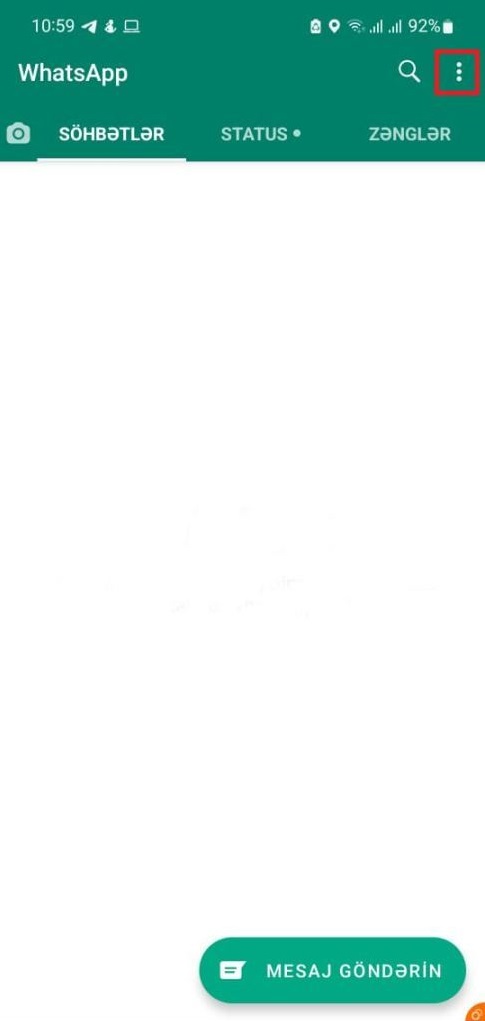 - “WhatsApp”ı açın və yuxarı sağ küncdəki üç nöqtəli işarəyə toxunun və “Parametrləri” seçin