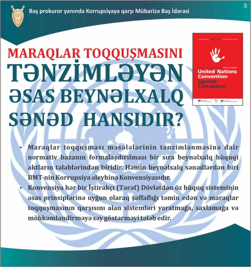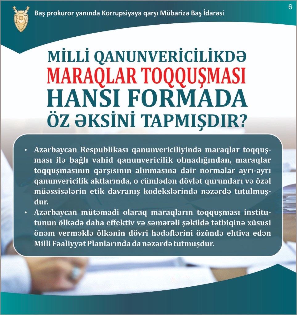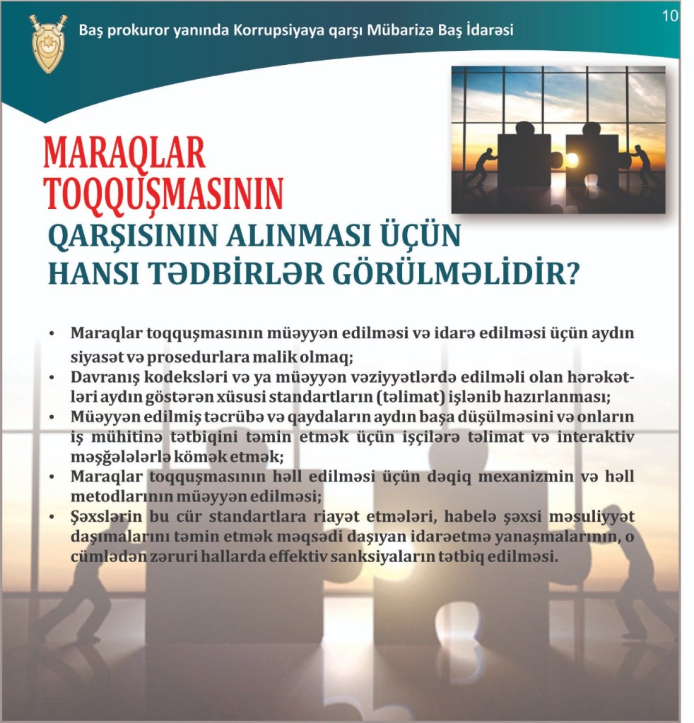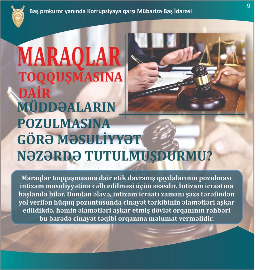 Baş prokuror yanında Korrupsiyaya qarşı Mübarizə Baş İdarəsi tərəfindən hazırlanmış slaydlarda “Maraqlar toqquşması nədir?” mövzusu ilə bağlı vətəndaşlara maraqlı izah verib.