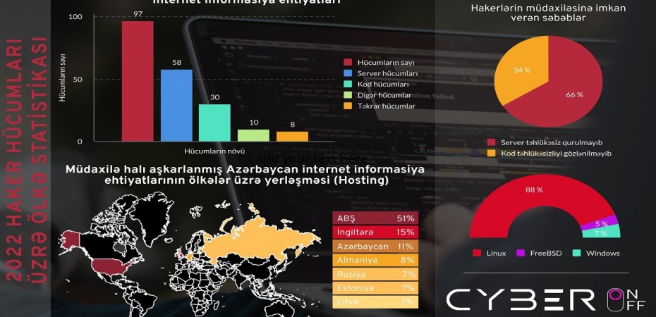 “CYBER ON” şirkəti tərəfindən aparılan monitorinqə əsasən 2022-ci il ərzində “.az” ölkə kodlu informasiya resurslarına qarşı çox saylı kiberhücumlar nəticəsində 97 veb-resursa haker müdaxiləsi halının reallaşdırıldığı müəyyən olunub.