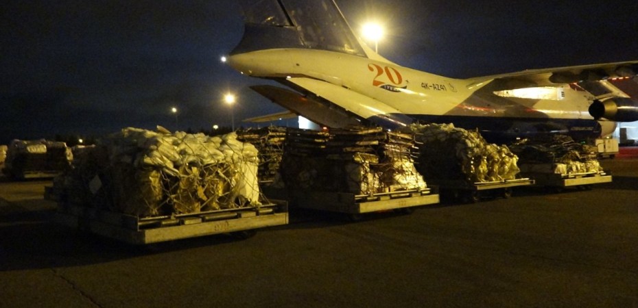 Hava nəqliyyatı ilə ümumilikdə 115 ədəd müxtəlif ölçülü çadır, 1448 ədəd ədyal, 140 ədəd çarpayı, 90 ədəd qızdırıcı, 300 ədəd masa, 1000 ədəd oturacaq, 2000 ədəd iplik dəsmal və digər ləvazimatlar göndərilib.