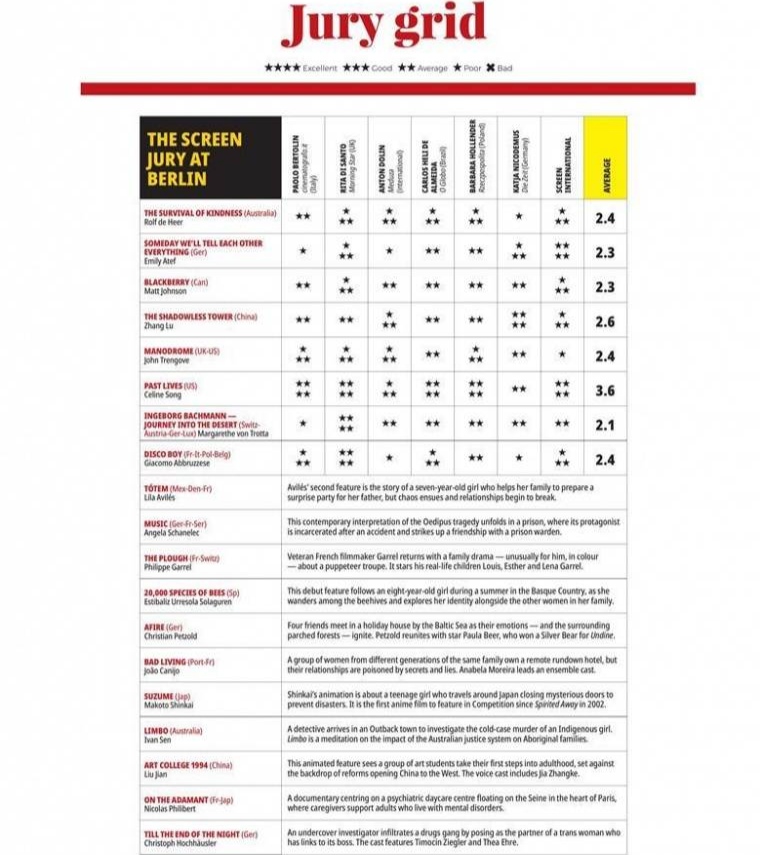Fevralın 16-dan 26-dək Almaniyada 73-cü Berlin Beynəlxalq Film Festivalı keçirilir. Festivalın sonuna sayılı günlər qalmış kino tənqidçilərinin ilkin qiymətləndirmələri “Screen” jurnalında dərc olunub.
