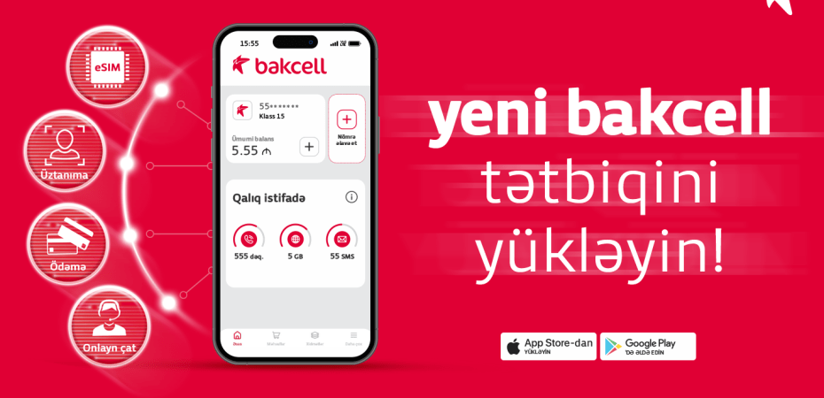 Yeni “Bakcell” tətbiqi üztanıma texnologiyası, onlayn çat, ödəniş və loyallıq proqramının tətbiq olunduğu çoxfunksiyalı platformadır. Tətbiqdəki üztanıma texnologiyası sayəsində eSIM nömrə almaq və ya mövcud “Bakcell” nömrəsinin eSIM dublikatını çıxarmaq üçün onlayn müraciət etmək kifayətdir.