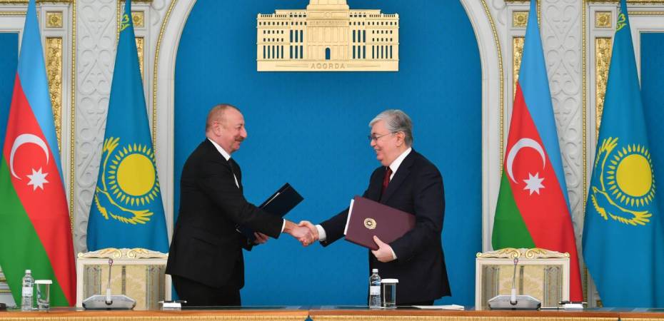 Geniş tərkibdə görüşü başa çatdıqdan sonra Azərbaycan-Qazaxıstan sənədlərinin imzalanması mərasimi olub.