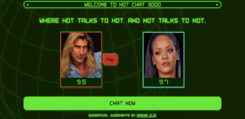 Американский арт-коллектив MSCHF создал сервис Hot Chat 3000. Это сайт для знакомств с встроенным в него искусственным интеллектом.